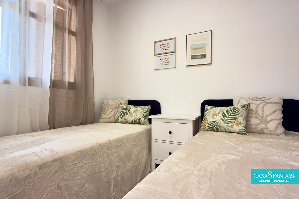 Wspaniały apartament na drugim piętrze o powierzchni mieszkalnej 80 m² z przestronnymi tarasami. Nieruchomość posiada dwie jasne sypialnie i dwie łazienki, zaprojektowane z myślą o maksymalnym komforcie. Sprzedawany jest w pełni umeblowany, gotowy do zamieszkania lub jako doskonała inwestycja.