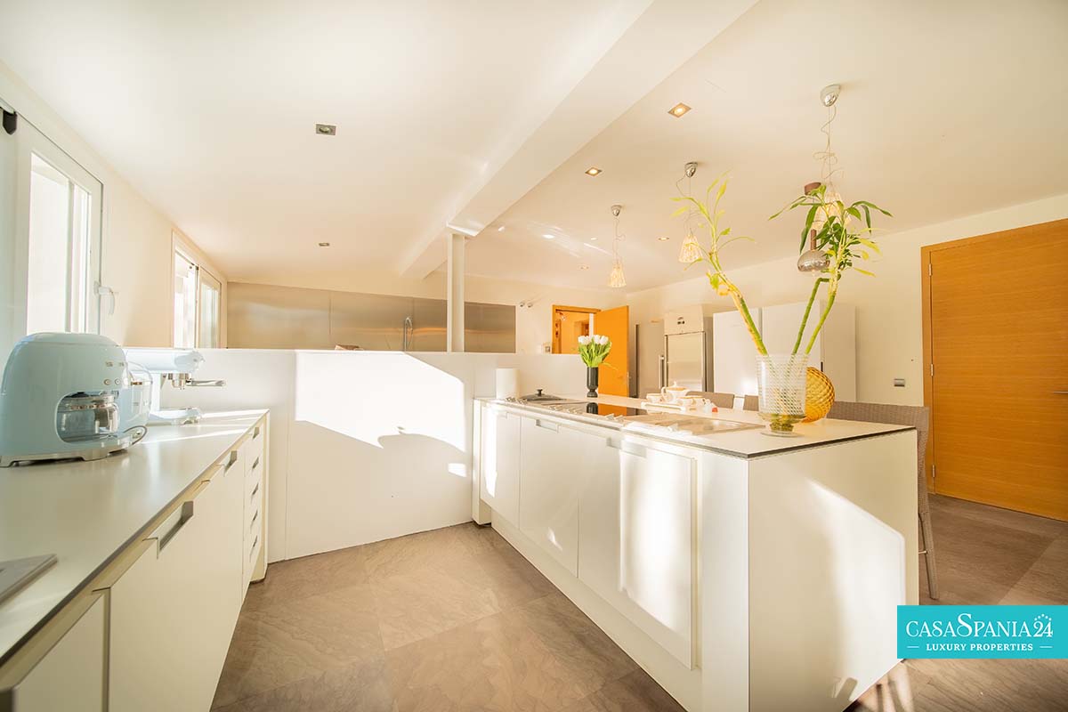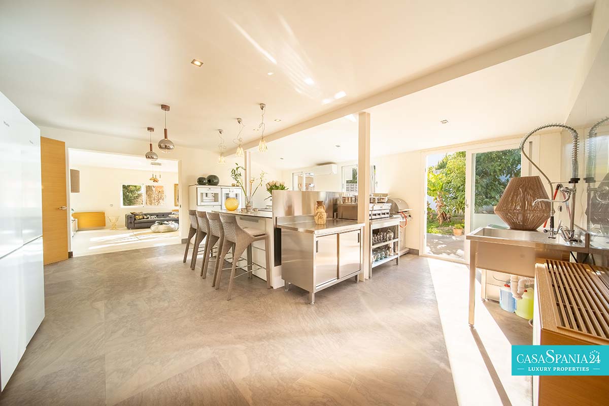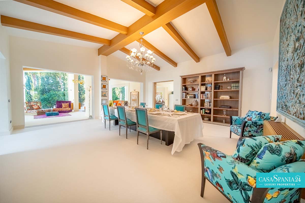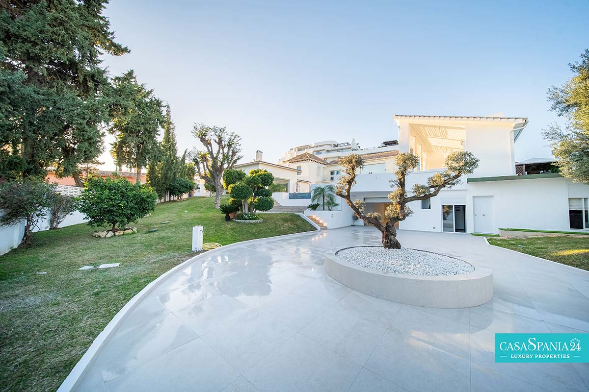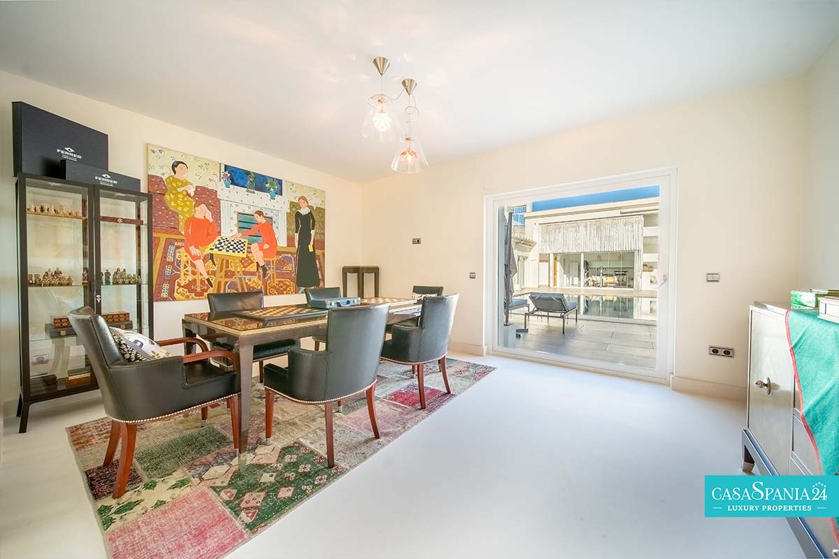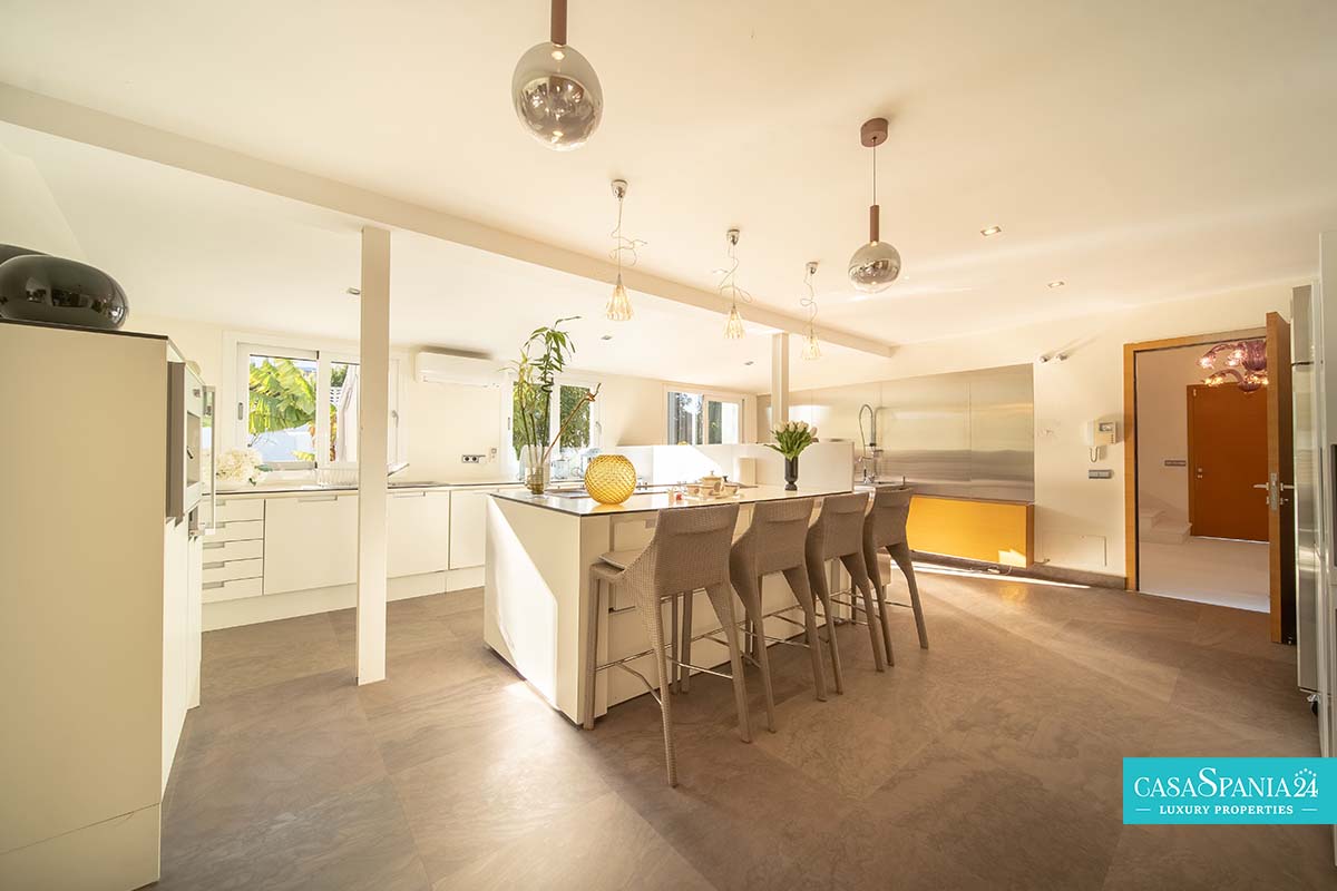 Przestronna i gustownie zaprojektowana, niedawno odnowiona willa położona w Guadalmina Alta, w odległości krótkiego spaceru od klubu golfowego Guadalmina, zaledwie 10 minut od Puerto Banús i 5 minut od udogodnień centrum handlowego. Nieruchomość oferuje przestronne przestrzenie, idealne dla rodziny, z dużym prywatnym terenem i podwójnym wejściem. Na parterze znajduje się jasna i przestronna, otwarta przestrzeń dzienna, obejmująca kilka salonów i jadalnię, która otwiera się na nowoczesną kuchnię z centralnie umieszczoną wyspą.